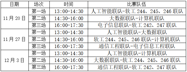 经过赛事分组,分别于11月20日、11月27日、12月3日逐步开展赛程的小组赛。