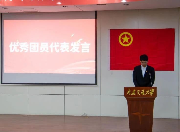 优秀团员代表、学院团委副书记邢钧尧同学结合自身成长经历,勉励新团员们坚定理想信念,勇担青春使命,在奋斗中绽放青春光彩,走好新时代青年的长征路。