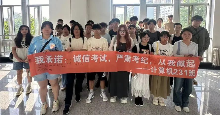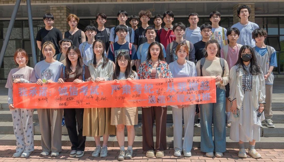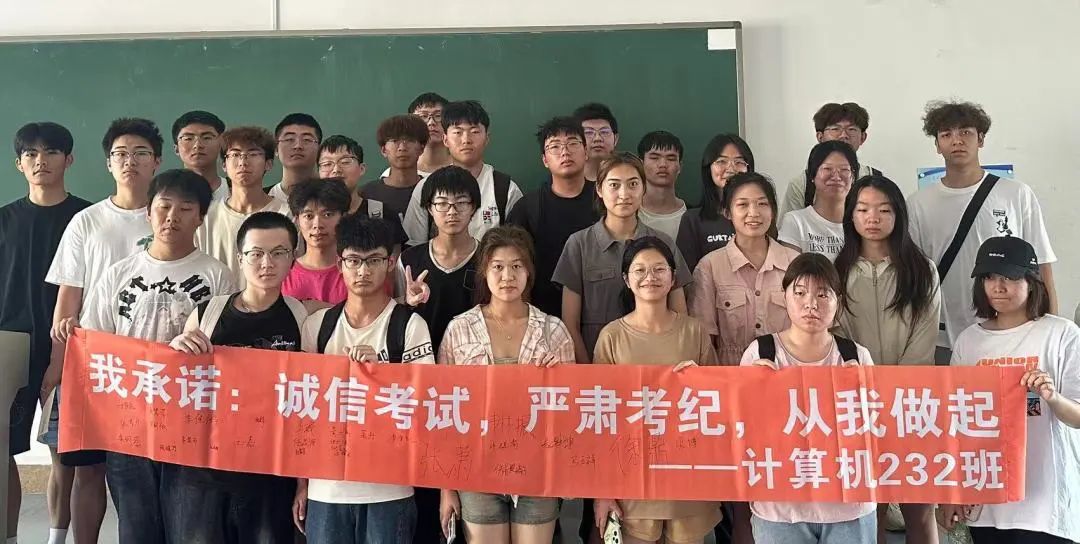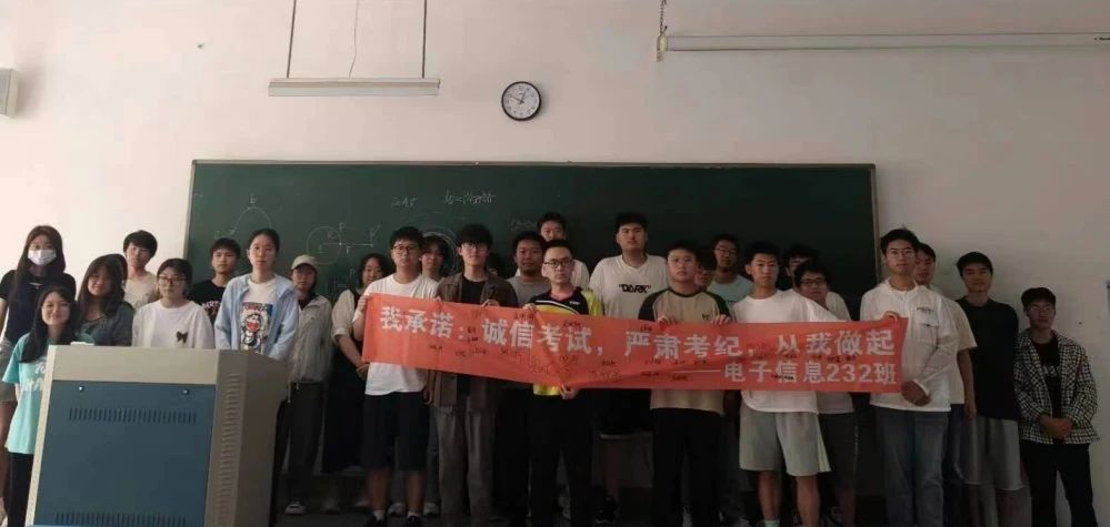针对学院前期出现考试作弊的情况,辅导员老师也对其进行了针对性教育。6月17至18日,计通学院通过召开集队会,让学院每一位考生在横幅上签字,承诺自觉遵守考试规则,以诚信的态度对待每一场考试。