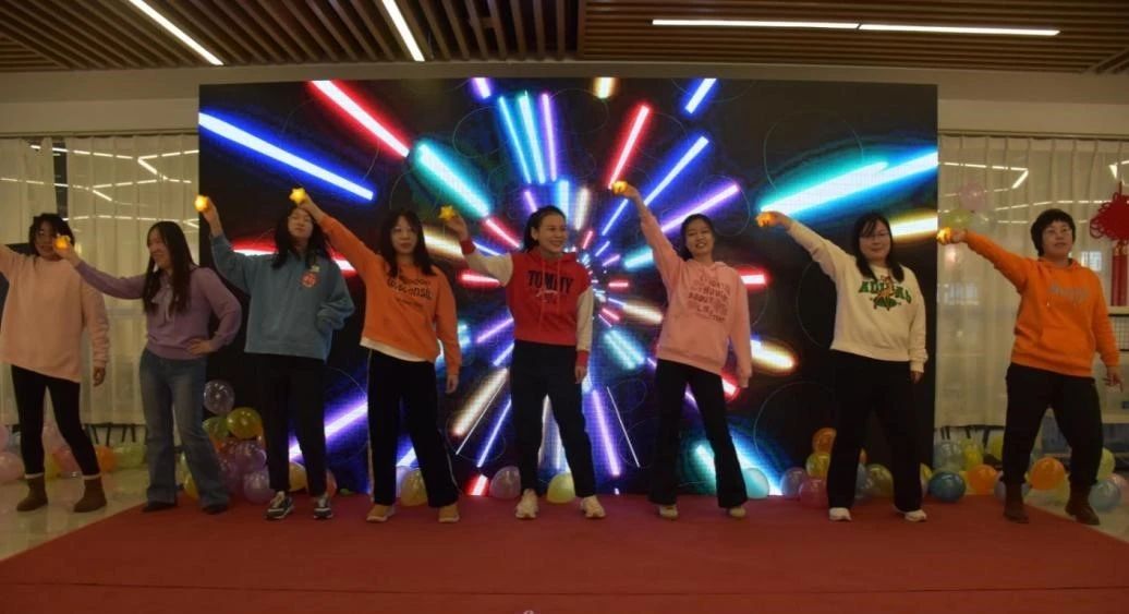 精彩纷呈的联欢会上还设置了游戏和抽奖环节。在《猜歌名》《你比我猜》两个互动游戏中,全体教师积极参与、跃跃欲试,活动中默契十足,现场笑声不断。