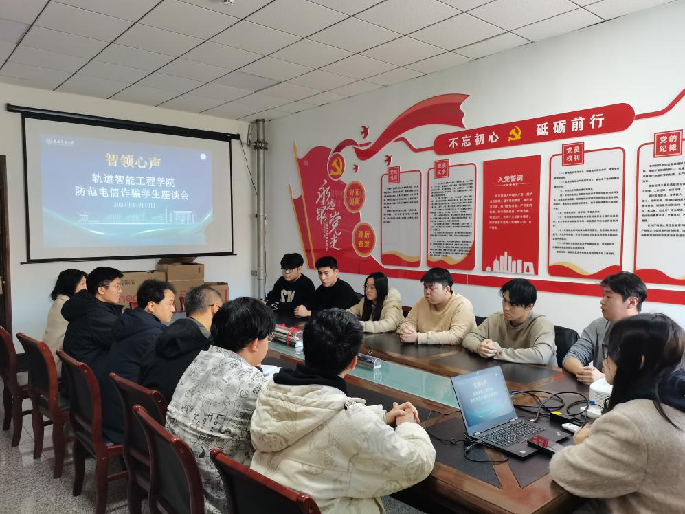 组织召开防范电信诈骗学生座谈会。学院党委书记陈少华、党委副书记邓晗出席会议,全体辅导员、各年级学生代表参加座谈。