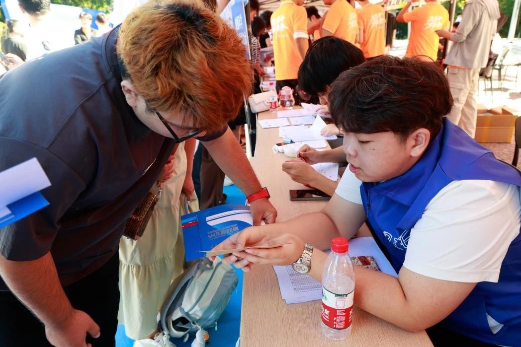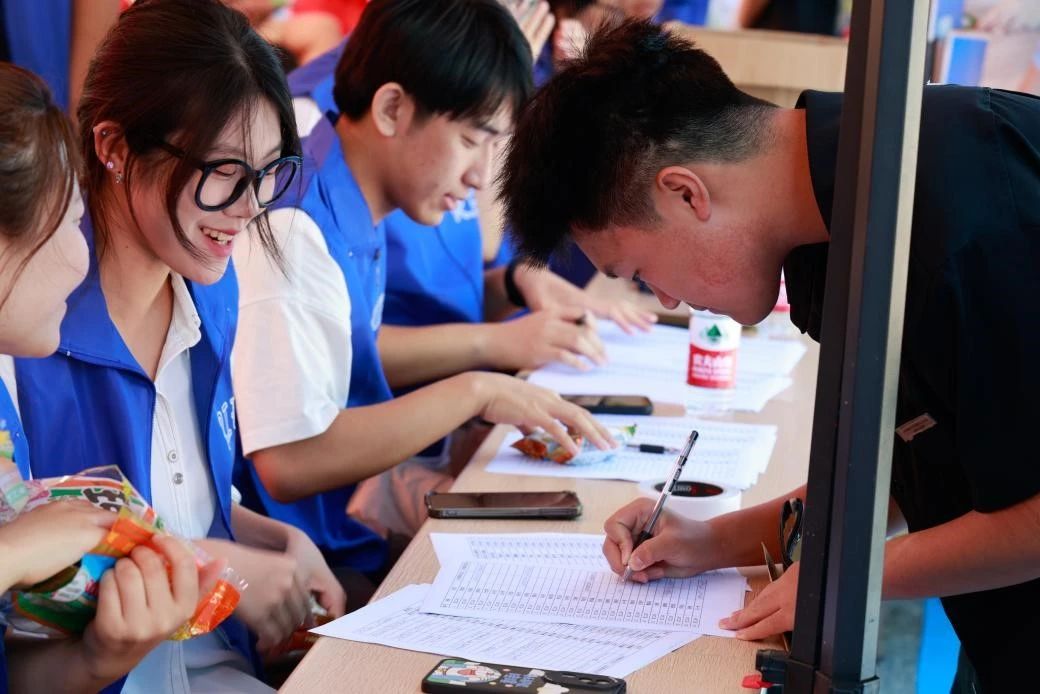 志愿者们以微笑为“笔”