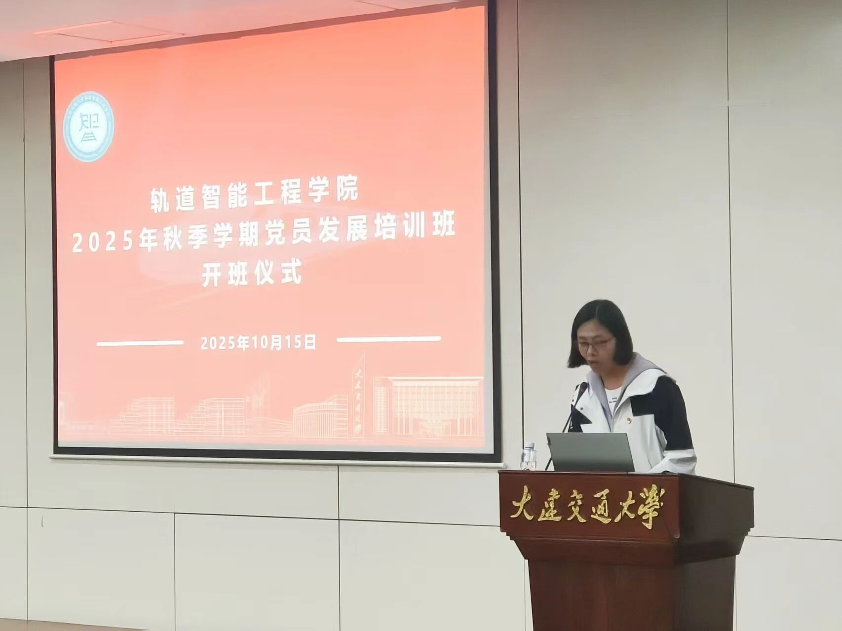 在旅顺口校区图书馆报告厅举行2025年秋季学期党员发展培训班开班仪式,学院党委书记陈少华、党委副书记邓晗、组织员张程远出席仪式,开班仪式由组织员赵金蕾主持。